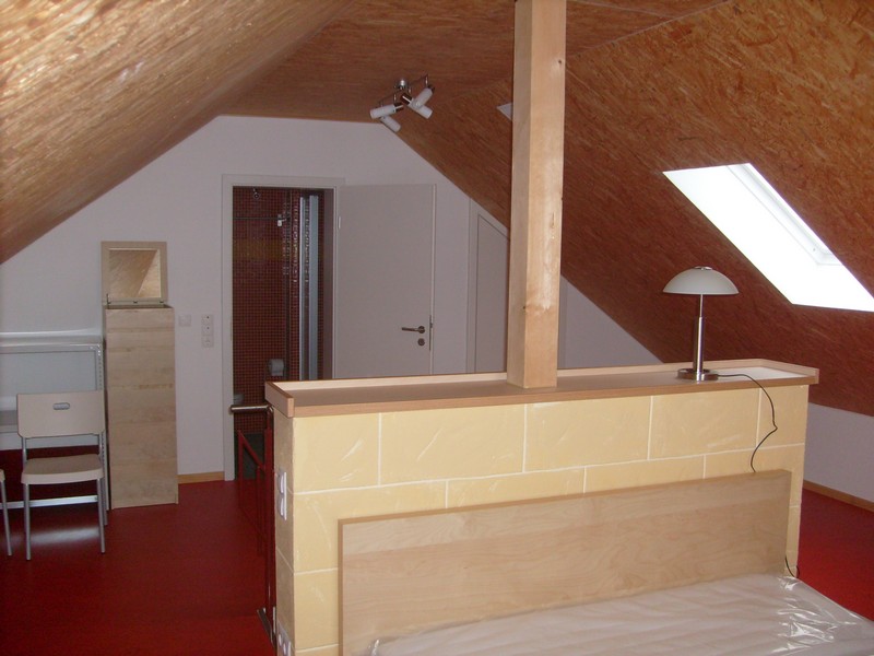 La scala conduce alla mansarda, che è anche dotato di letto matrimoniale e doccia \/ WC. Supplemento di 5 o più è disponibile.