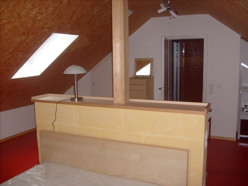 Eine Raumspartreppe führt zu der Dachwohnung , die ebenfalls mit Doppelbett und Dusche / WC ausgestattet ist. Bei Zuzahlung oder ab 5 Personen steht es Ihnen zur Verfügung.